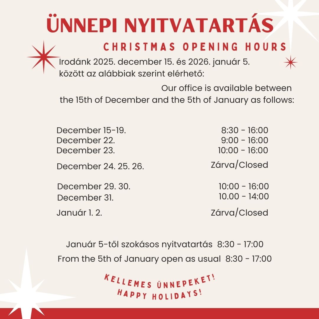 Ünnepi nyitvatartás/Christmas Opening Hours